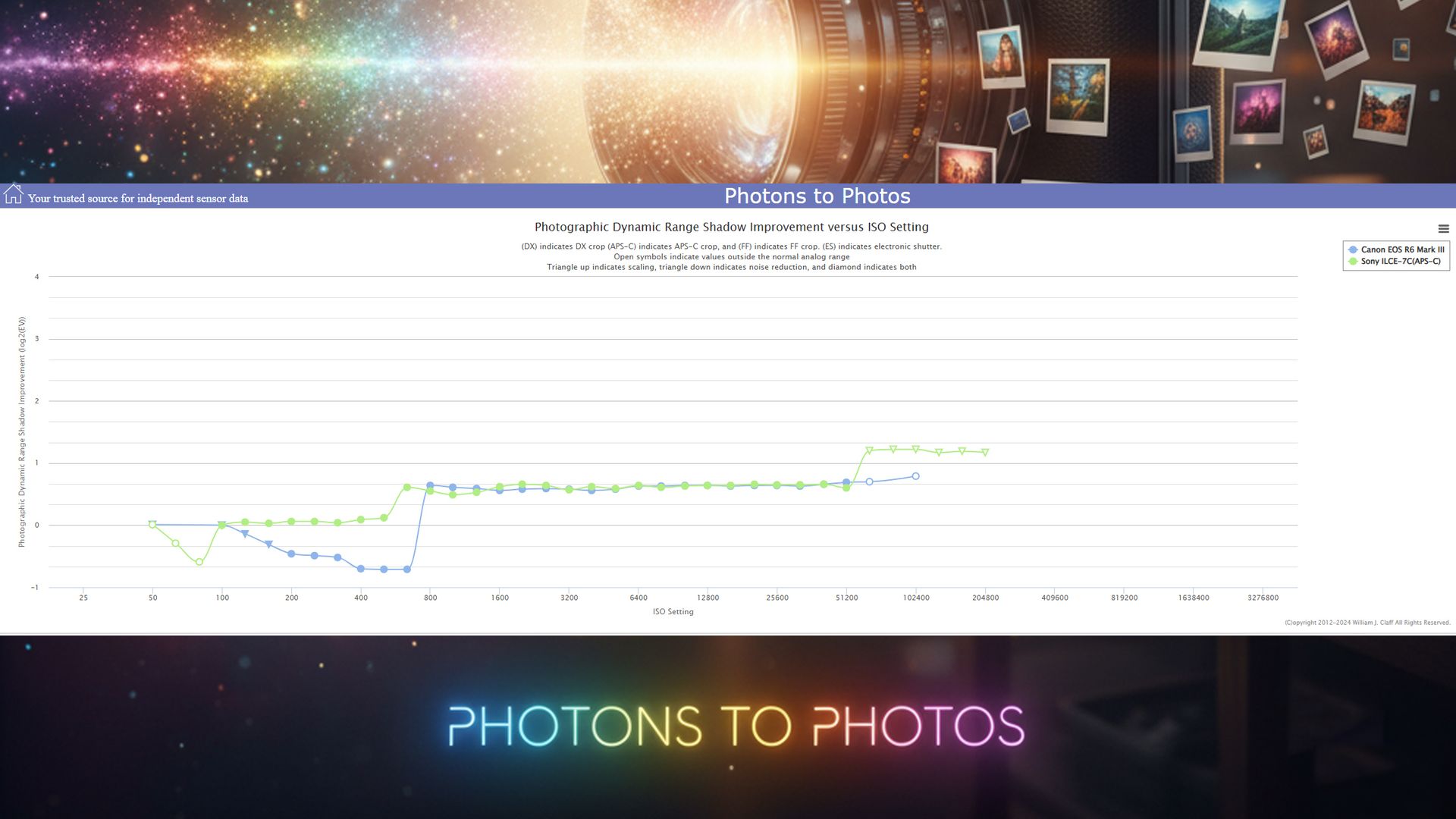 • Photons to Photos (2012-2025): Gráficos de PDR, Shadow Improvement e ruído de leitura.